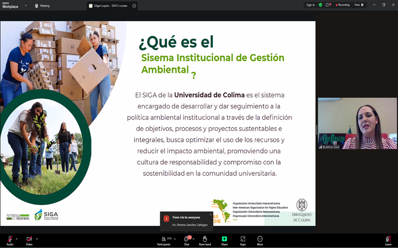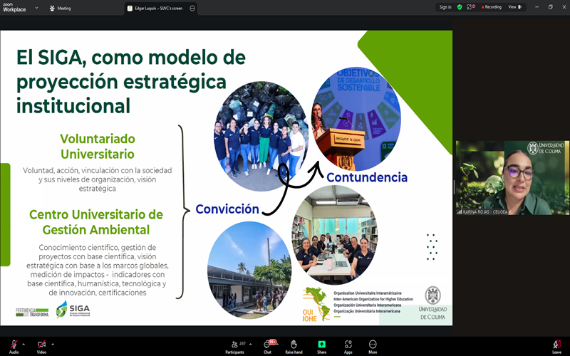 La Universidad de Colima Oficial, a través de su Voluntariado y del Centro Universitario de Gestión Ambiental (CEUGEA), participó en las Jornadas de Buenas Prácticas en Sustentabilidad de la Organización Universitaria Interamericana (OUI-IOHE), donde presentó su modelo Sistema Institucional de Gestión Ambiental (SIGA).