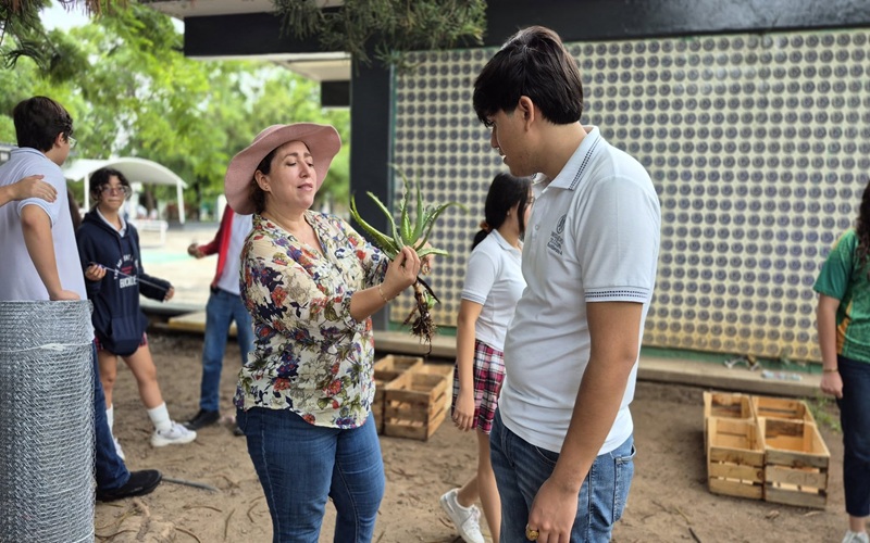 Este lunes 6 de octubre la Bióloga Marilin Hernández Ortiz del Centro Universitario de Gestión Ambiental de la Universidad de Colima, realizó una visita al Bachillerato #4, con el objetivo de brindar acompañamiento junto con la Maestra América Rosalba Sánchez Chavarría, en proyectos ambientales como el huerto escolar, herbolaria y rehabilitación de jardineras, los cuales se desarrollan dentro de las materias de gestión de proyectos y medio ambiente y sociedad.