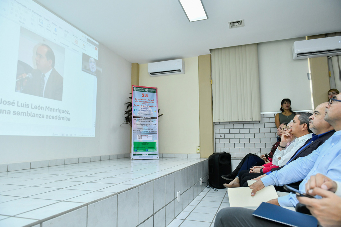 Este jueves iniciaron los trabajos del 25° Seminario Anual de Investigación sobre la Cuenca del Pacífico, en el auditorio del Centro Universitario de la Cuenca del Pacífico de la Universidad de Colima. Como parte central del evento, se otorgó el reconocimiento como investigador distinguido del año al Dr. José Luis León Manríquez, de la Universidad Autónoma Metropolitana, y se develó una placa en la sala de juntas del CUEICP-CEAPEC, que llevará el nombre de José Ernesto Rangel Delgado.