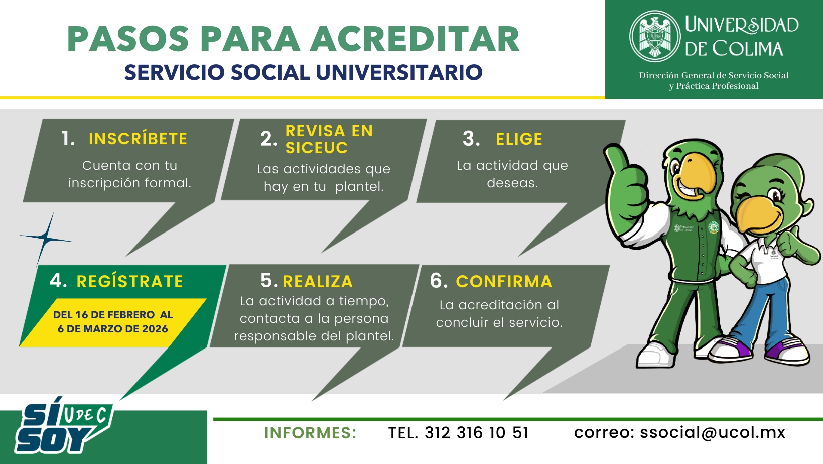 “El servicio social universitario (SSU) es una estrategia formativa orientada al desarrollo de competencias de responsabilidad social, en la que el estudiantado participa de manera solidaria, en programas y actividades que fortalezcan su formación, a la Universidad de Colima y a la sociedad"