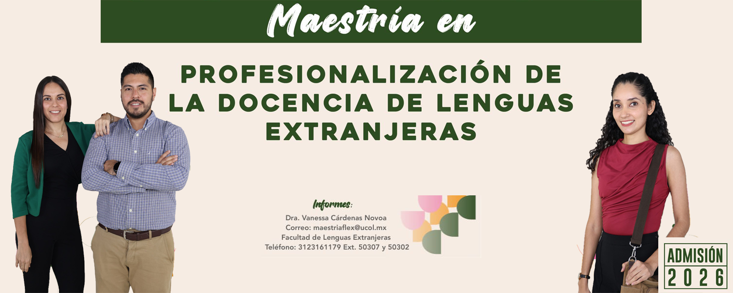 Este es el sitio web de la Facultad de Lenguas Extranjeras de la Universidad de Colima, sobre la Maestría en Profesionalización de la Docencia de Lenguas Extranjeras el cual difunde sus programas académicos, así como las actividades que se llevan a cabo para la formación integral de los futuros maestros y maestras.