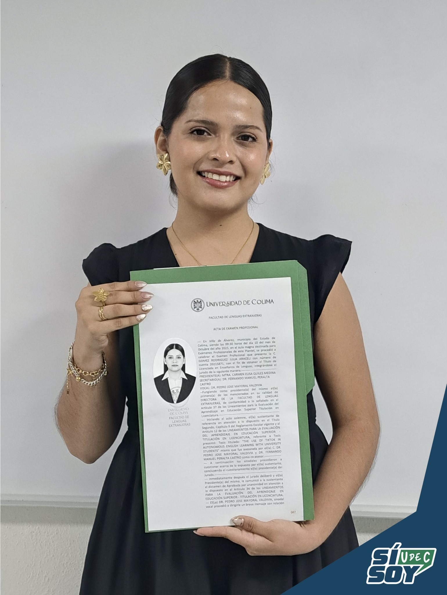 Con orgullo, celebramos el Examen Profesional de Julia Araceli Gómez Rodríguez, quien obtuvo el título de Licenciada en Enseñanza de Lenguas.