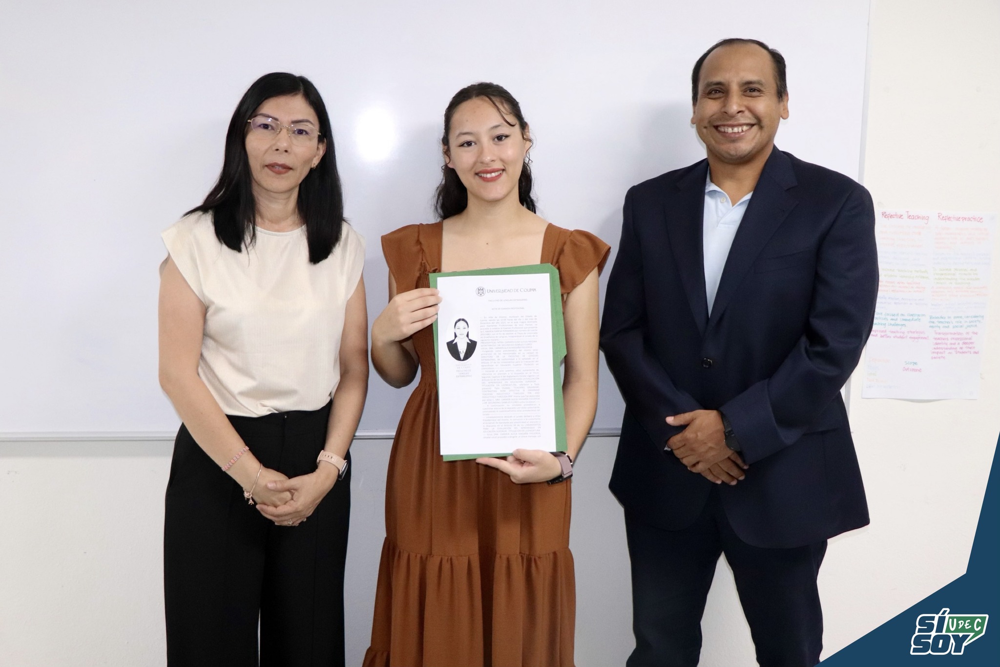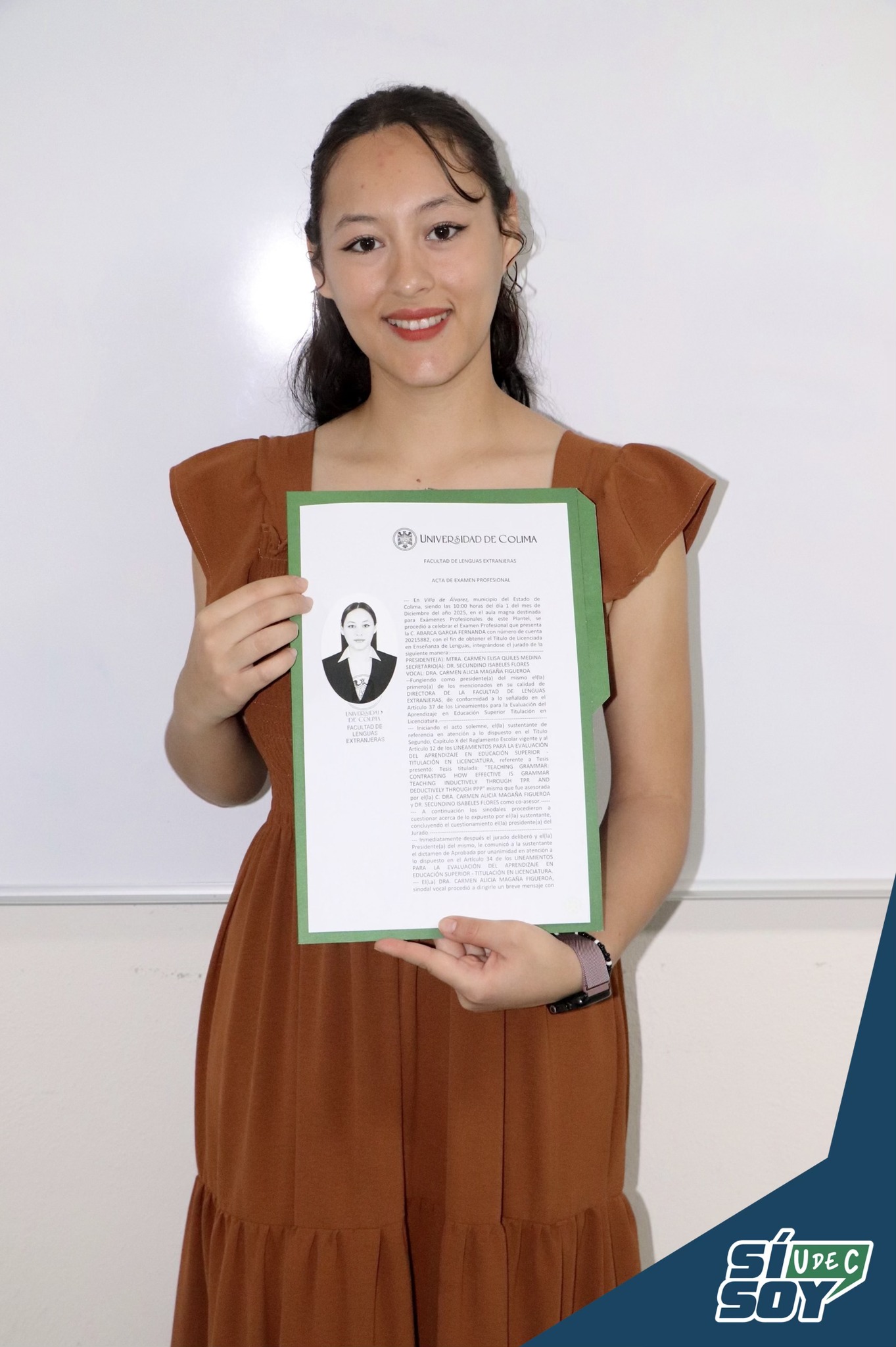 Felicitamos a la C. Fernanda Abarca García, quien aprobó por unanimidad su Examen Profesional para obtener el título de Licenciada en Enseñanza de Lenguas tras defender exitosamente su tesis titulada: "Teaching Grammar: Contrasting How Effective Is Grammar Teaching Inductively Through TPR and Deductively Through PPP".