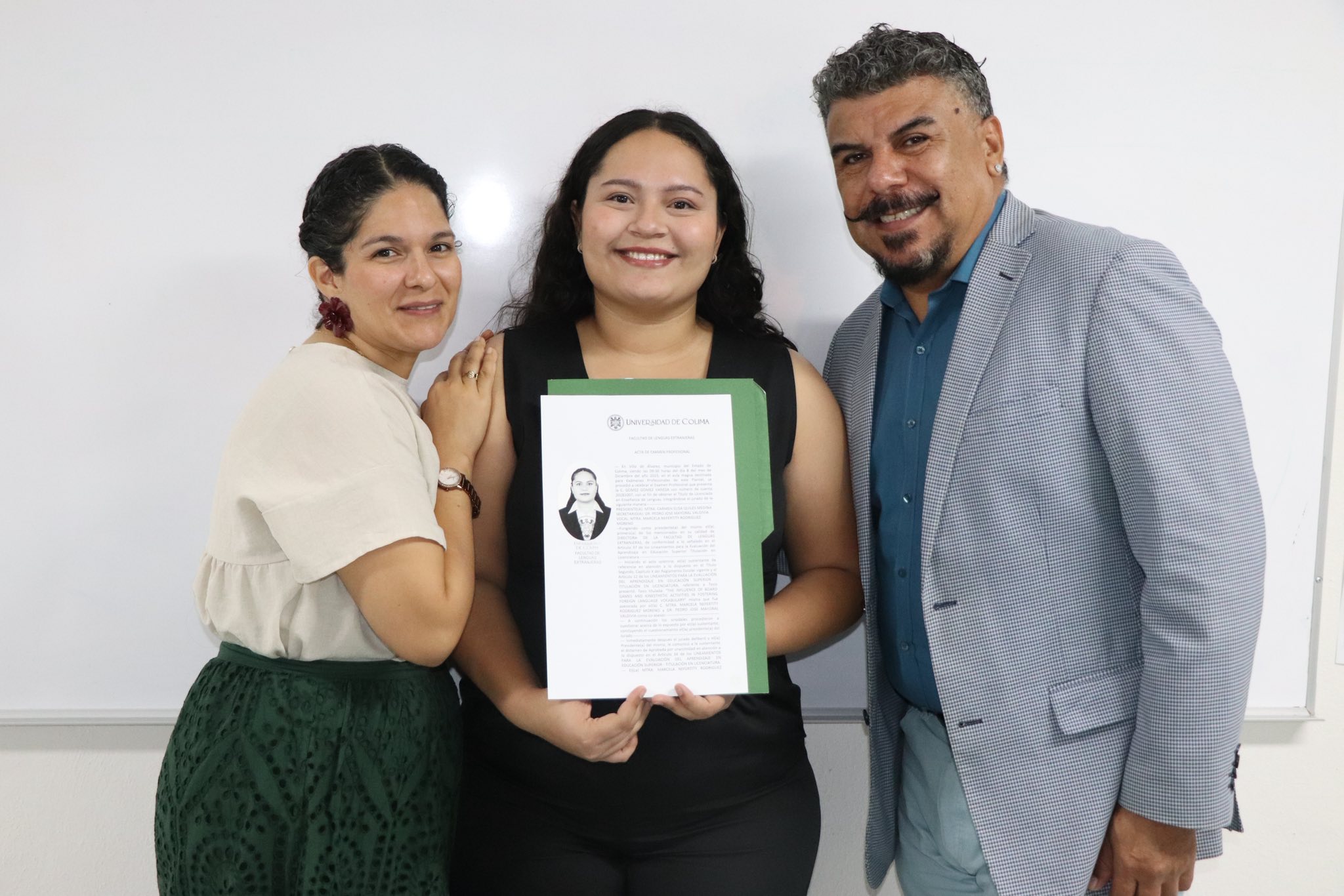 El jurado integrado por la Mtra. Carmen Elisa Quiles Medina como presidenta, el Dr. Pedro José Mayoral Valdivia como secretario y la Mtra. Marcela Neffertity Rodríguez Moreno como vocal, reconoció el trabajo, compromiso y claridad con la que Vanesa defendió su investigación .
