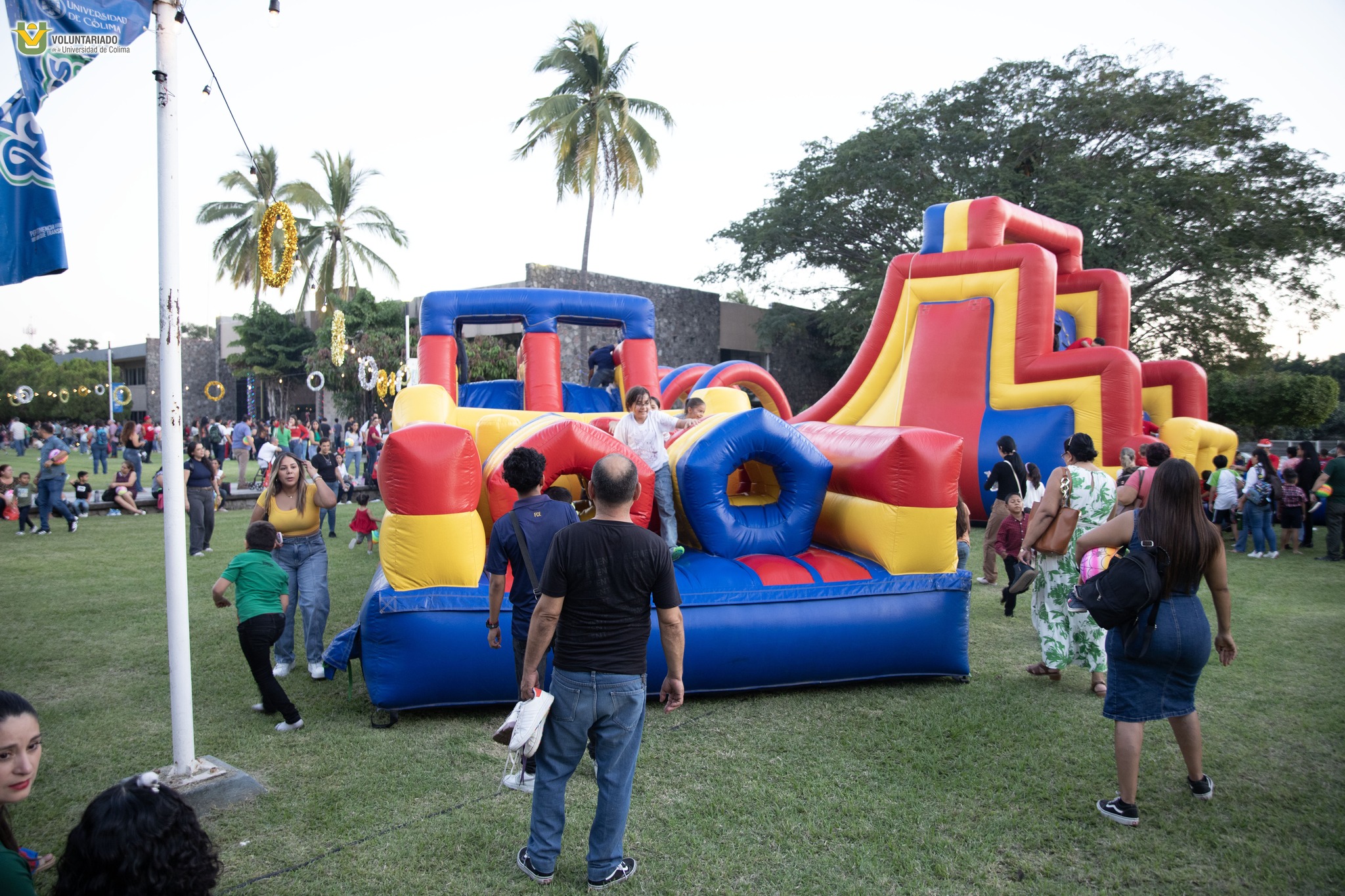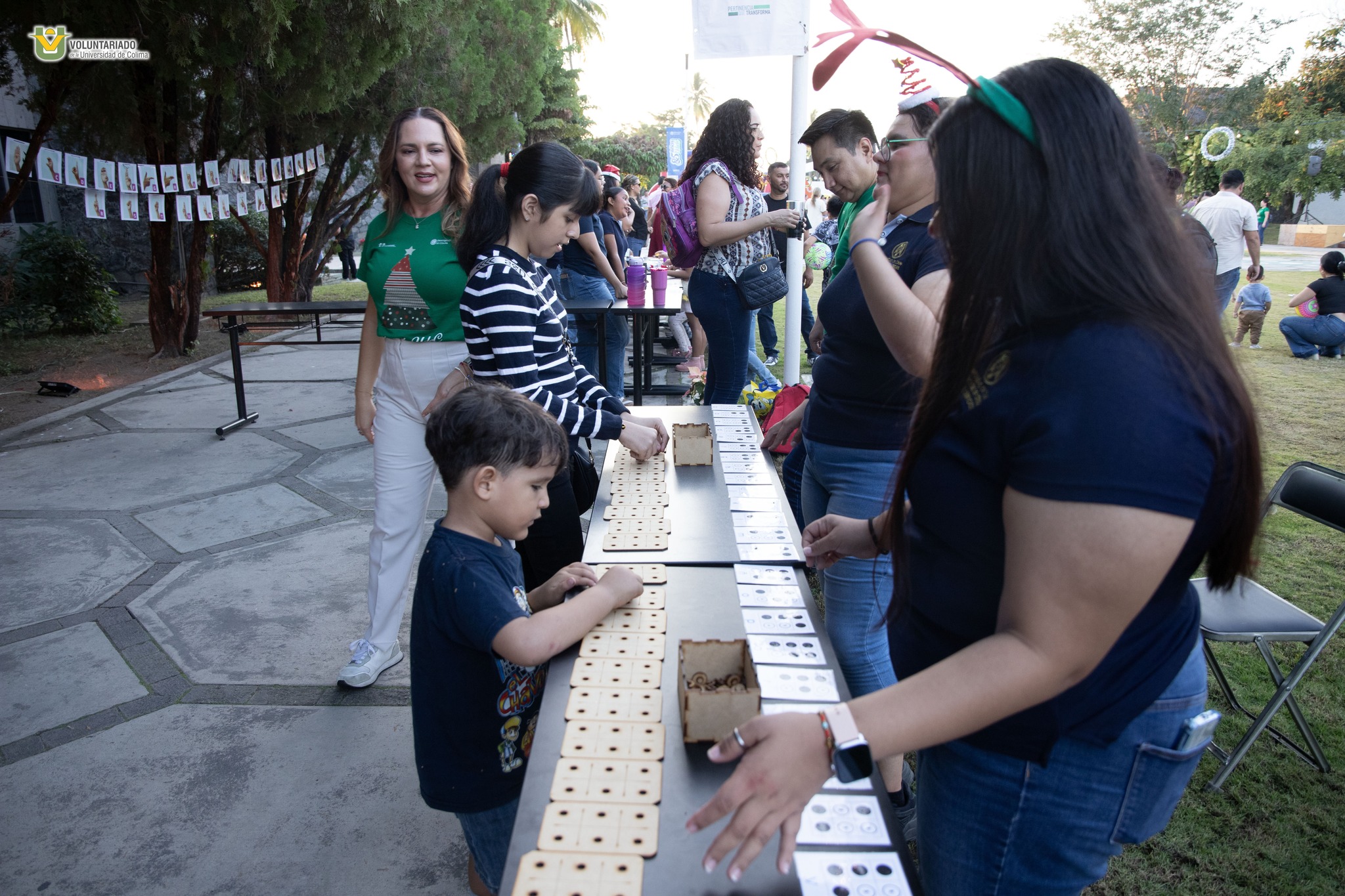 En el Campus Central, la Plaza Umbral del Saber se convirtió en un punto de encuentro lleno de luces, música y alegría. Acompañada por delegados de los campus Colima, Villa de Álvarez y Coquimatlán, así como titulares de sectores universitarios, la presidenta del Voluntariado celebró con hijas e hijos del personal universitario esta tradicional actividad. La decoración, realizada por las tres delegaciones en conjunto con la Facultad de Ciencias de la Educación, convirtió el espacio en un escenario navideño que invitó a la convivencia. Las familias disfrutaron de talleres de manualidades, retos matemáticos, actividades de lengua de señas y género, la clásica lotería navideña, dinámicas físicas y un toro mecánico. También hubo un set fotográfico con Santa Claus, cine al aire libre y brincolines, que hicieron de la tarde un momento lleno de diversión. El encendido del Árbol Navideño culminó con un espectáculo de juegos pirotécnicos que llenó el cielo de luz y emoción.